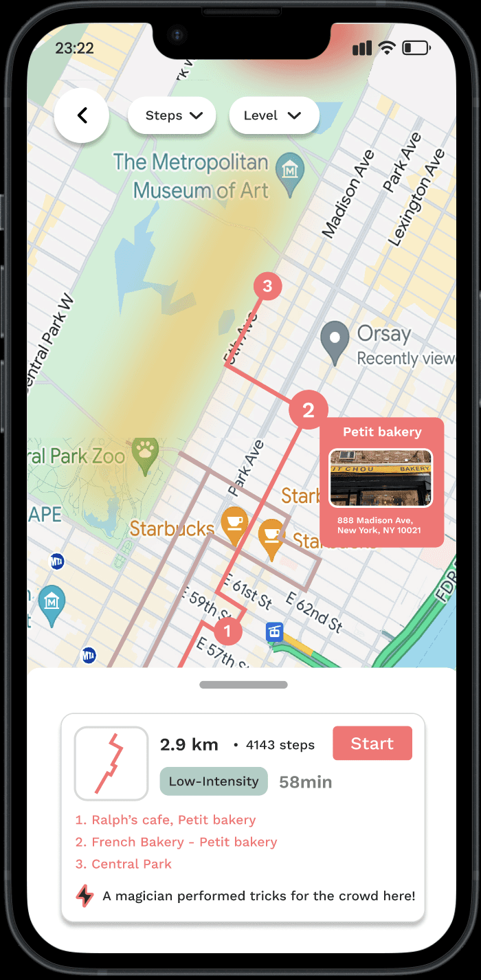 Step One is an app that motivates you to stay healthy, explore walkable cities, and seamlessly make walking a part of your daily life.